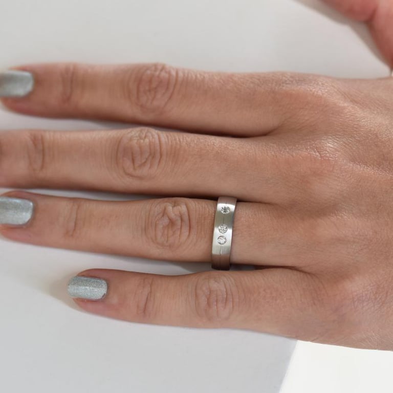 • die Damenvariante ist zusätzlich mit drei Diamanten verziert, die Ewigkeit versinnbildlichen