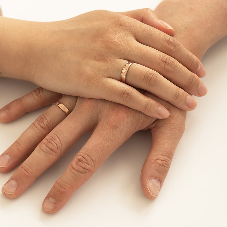 • ein elegantes Paar Trauringe aus recyceltem Gold in Gelb, Rosé oder Weiß