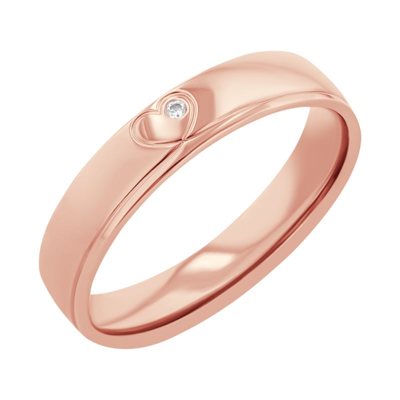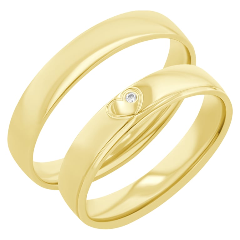 Goldene Eheringe mit einem Herzen und einem Diamanten Maline