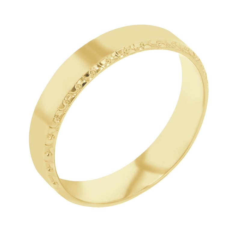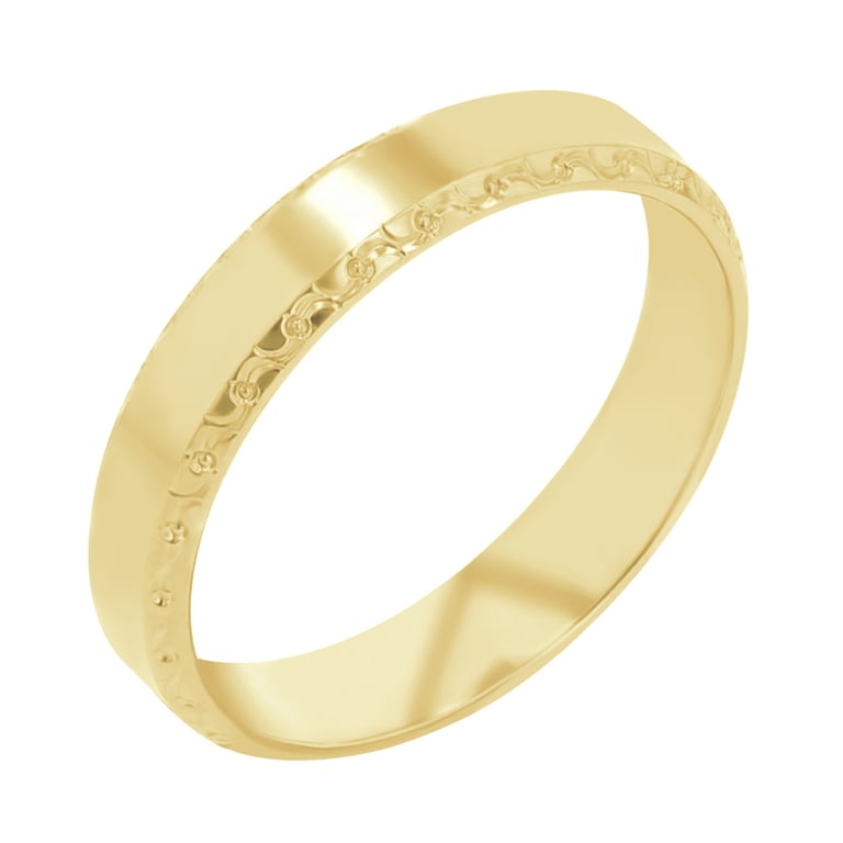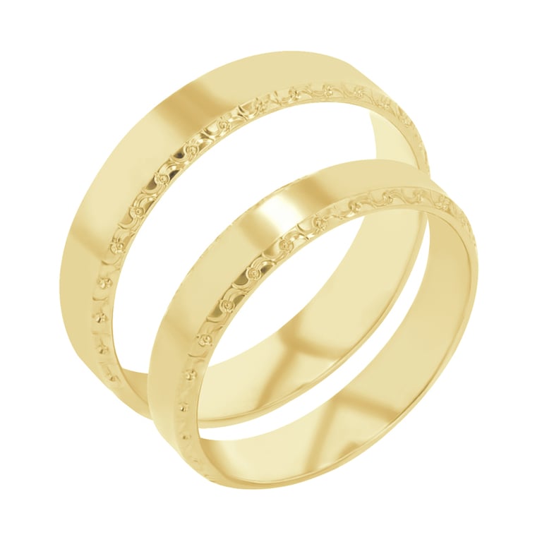 Goldene Eheringe mit einem verzierten Rand Rahim