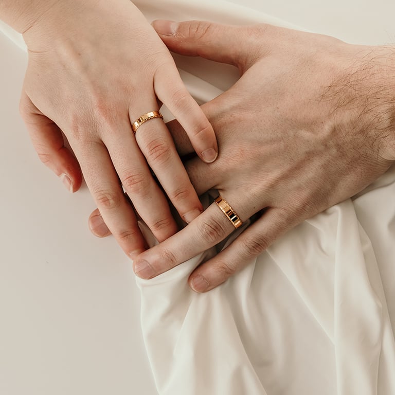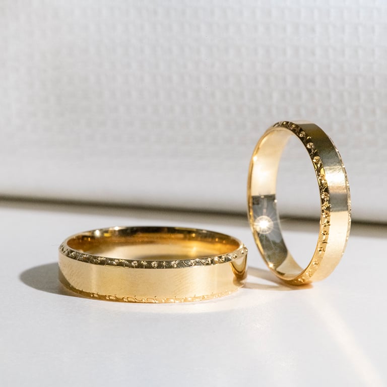 • die glatten Goldringe werden durch die Details in Form von Zierkanten aufgewertet