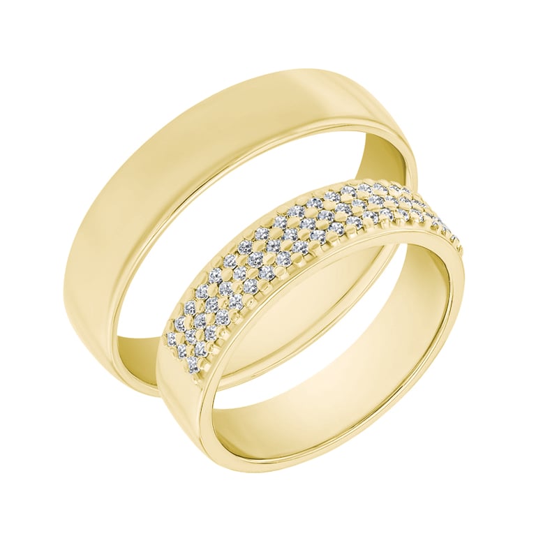 Goldene Eheringe mit Eternity Ring und Court Ring Muttial