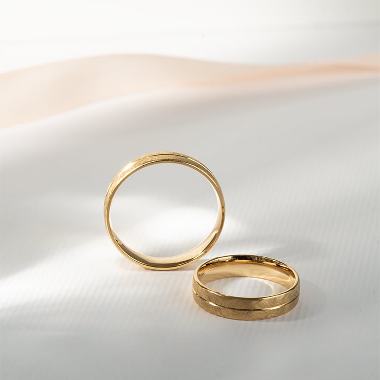 Goldene Eheringe mit gekratzter Oberfläche Alesha