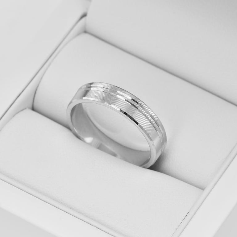 • originelle goldene Eheringe mit drei Rillen, die den ganzen Ring umlaufen