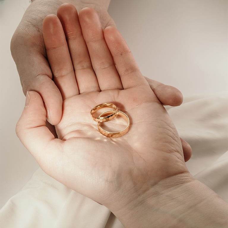 Goldene Eheringe mit Hammerschlag-Motiv Laurita