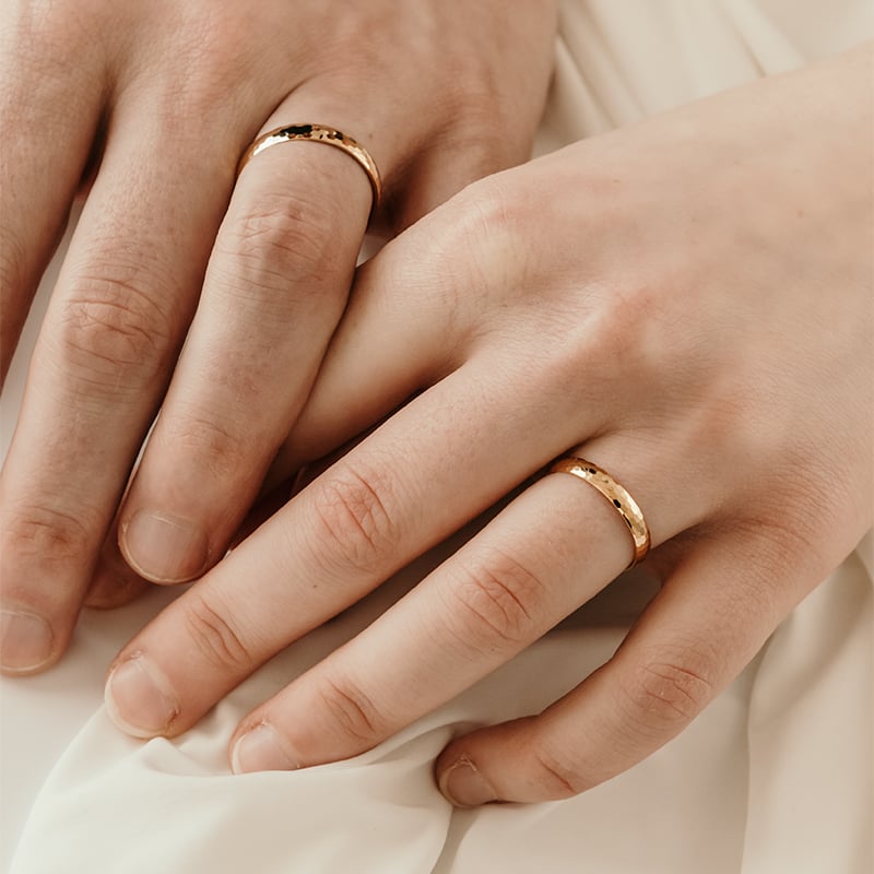 Goldene Eheringe mit Hammerschlag-Motiv Trevino