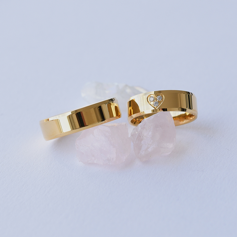 Goldene Eheringe mit Herz und Diamanten Alle