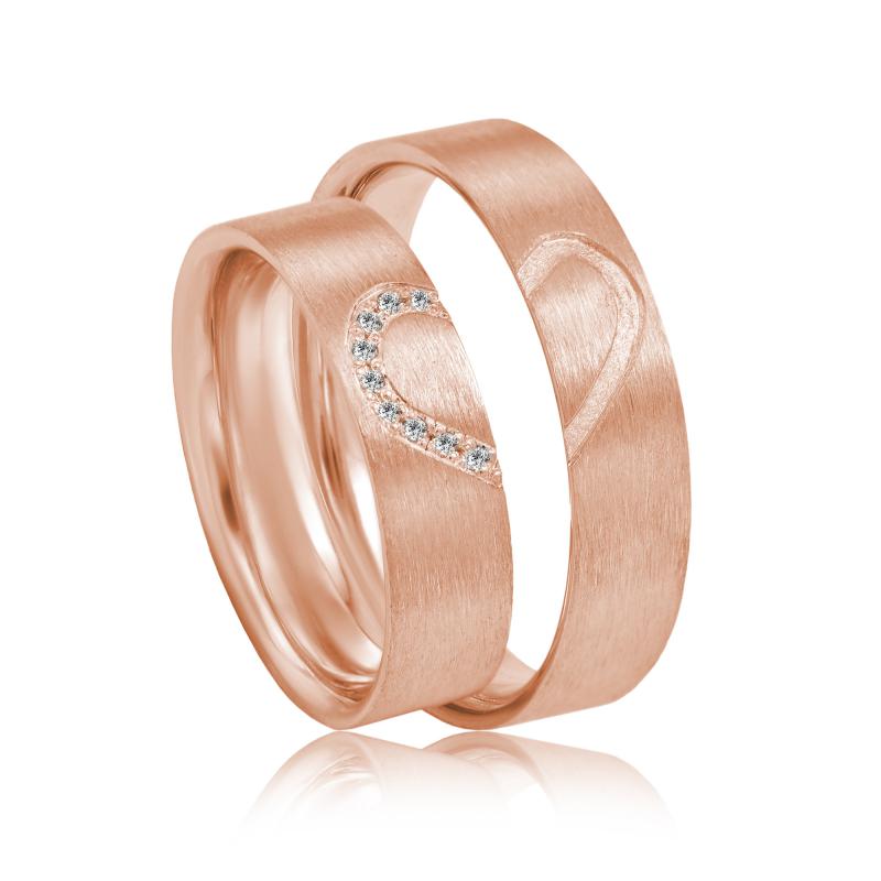 Goldene Eheringe mit Herz und Diamanten Enes