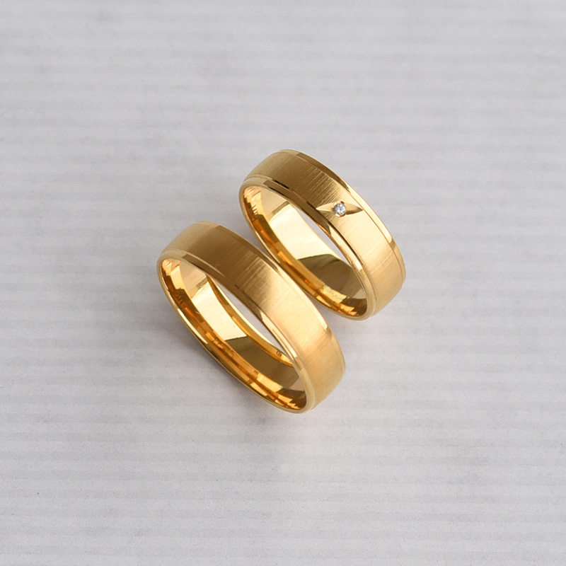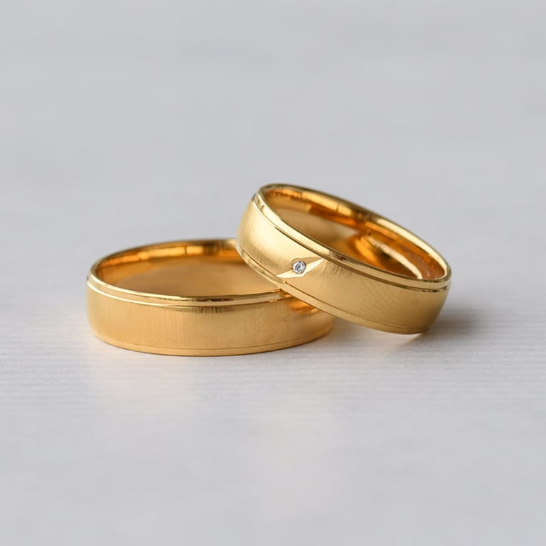 Goldene Eheringe mit matter Oberfläche und Diamanten Soul