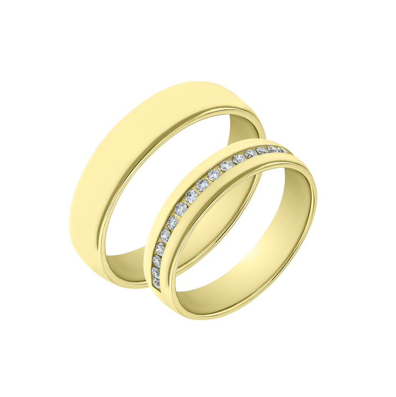 Goldene Eheringe mit Memoryring mit Diamanten Tiall
