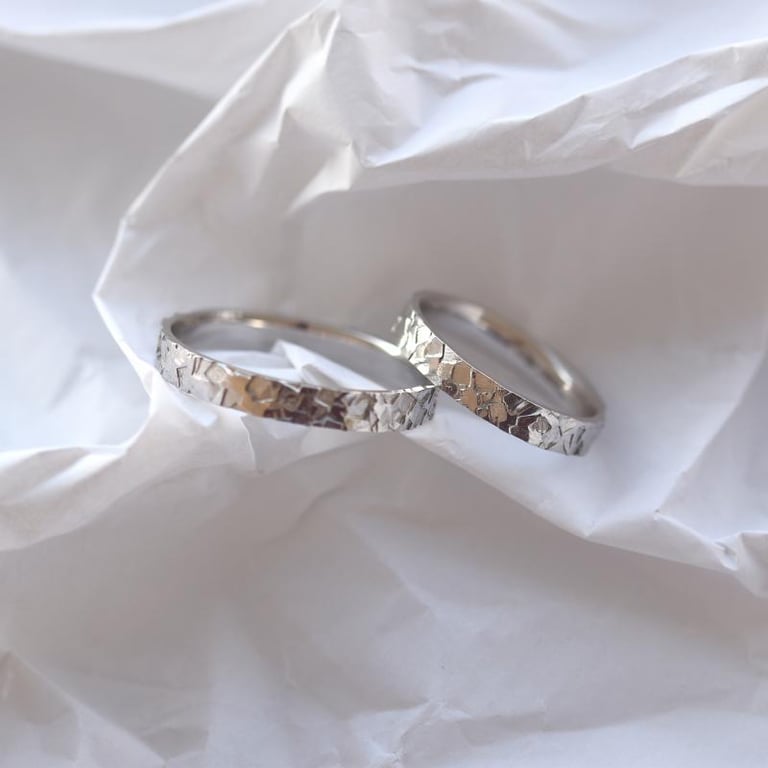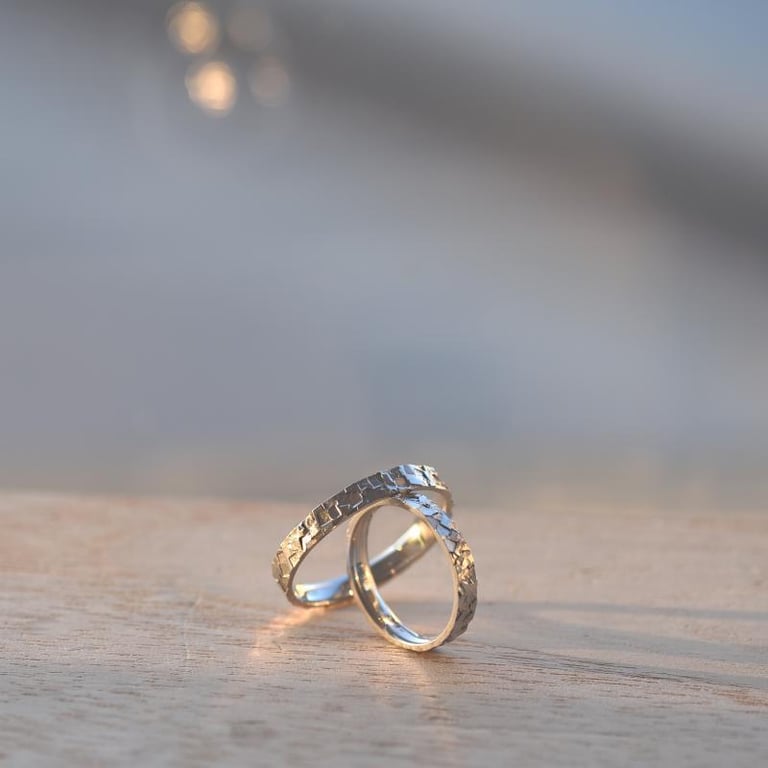 Goldene Eheringe mit Reliefoberfläche Xerdora