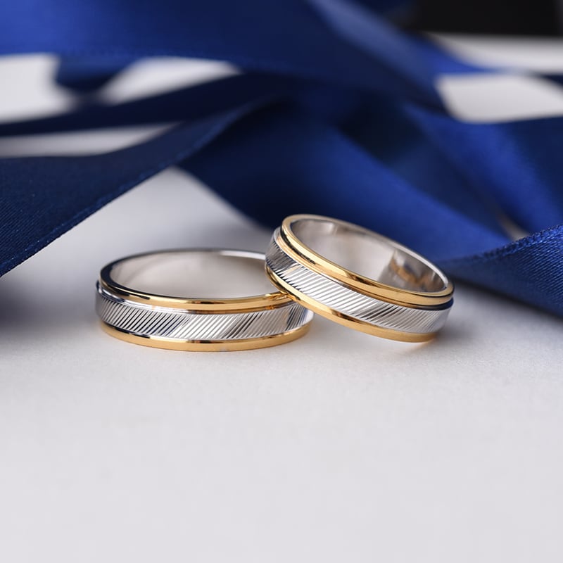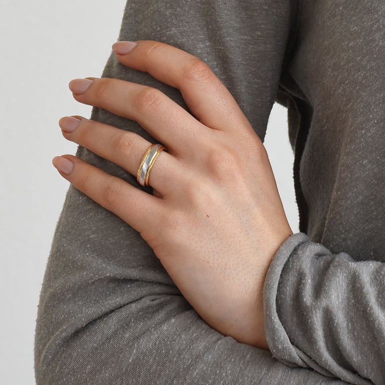 • originelle Eheringe aus mehrfarbigem Gold mit zarten Rillen