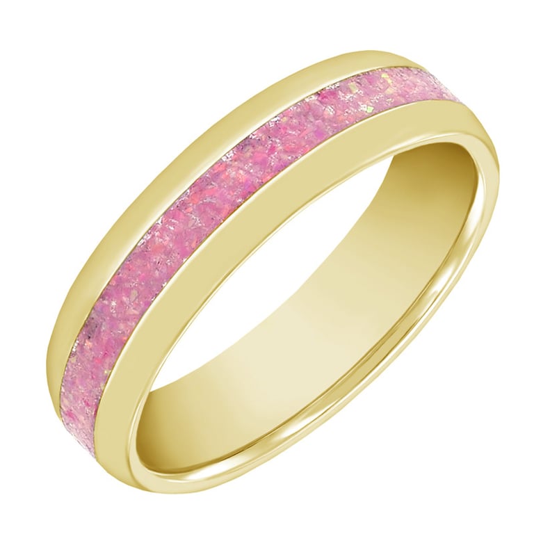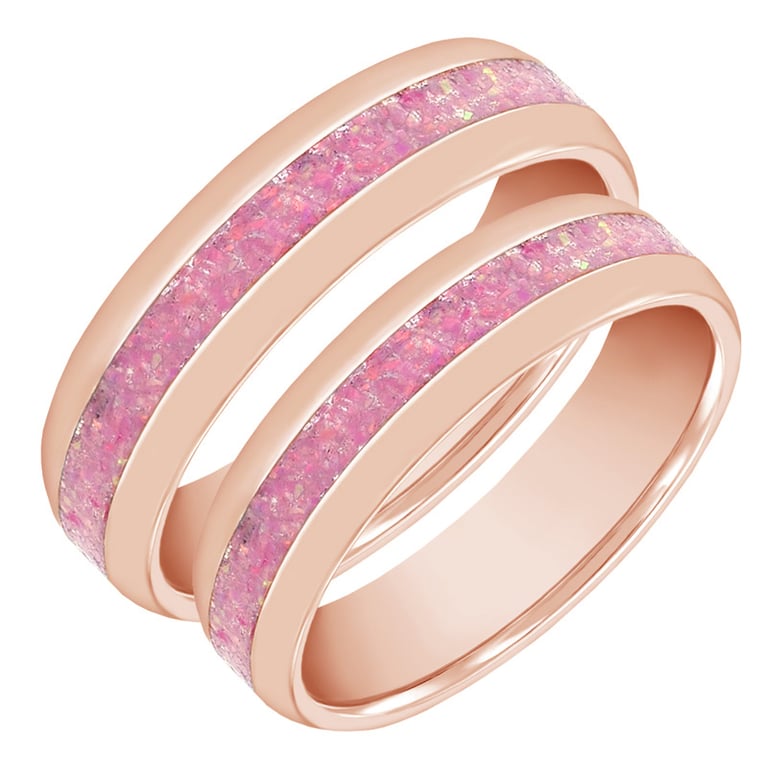 Goldene Eheringe mit rosa Opalfüllung Paole