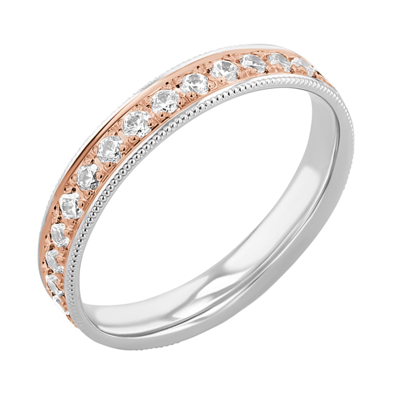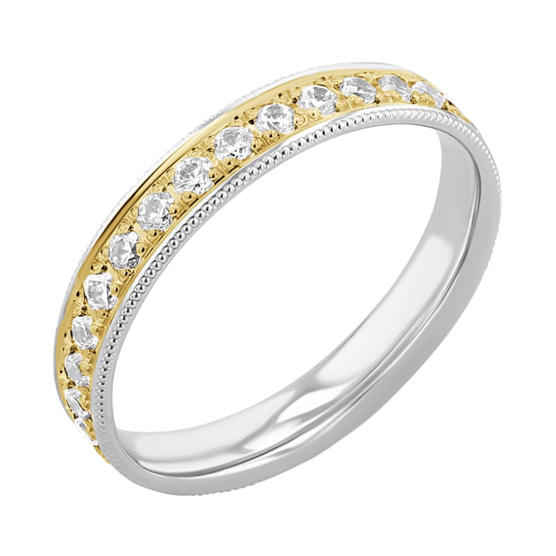 Goldene Eheringe mit verzierten Rändern und Diamanten Tasha