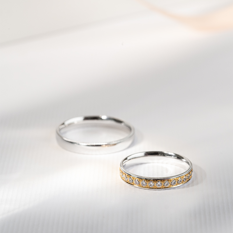 • die beiden mehrfarbigen Goldringe zeichnen sich durch kunstvoll verzierte Ränder aus