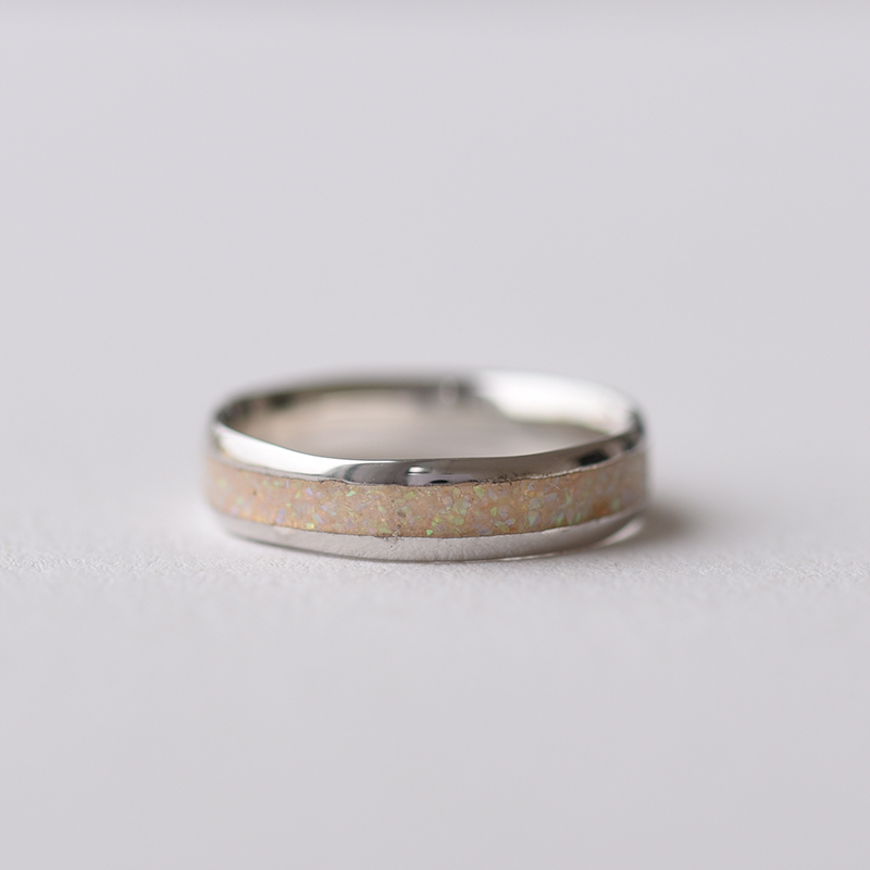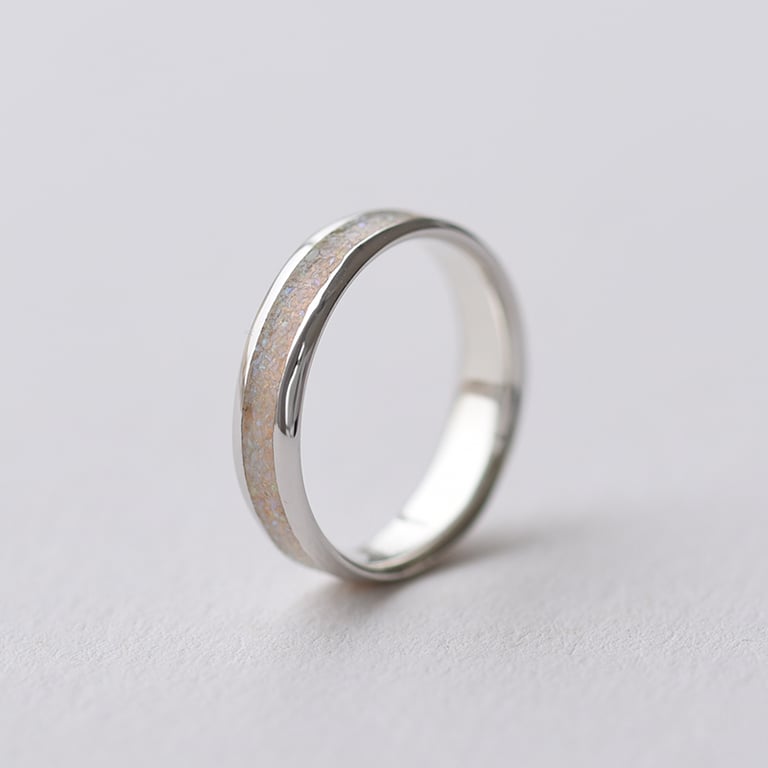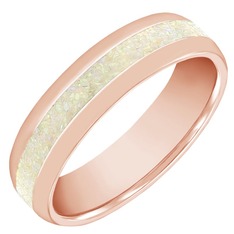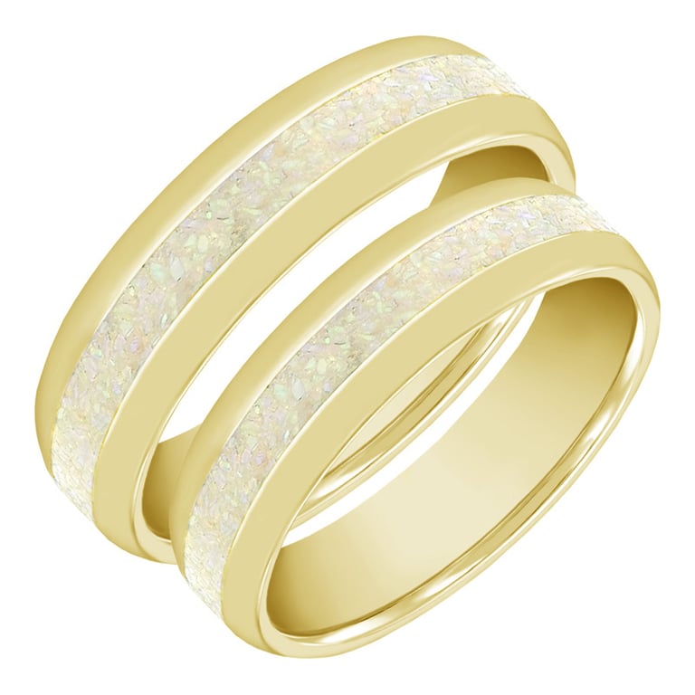 Goldene Eheringe mit weißer Opalfüllung Irenne