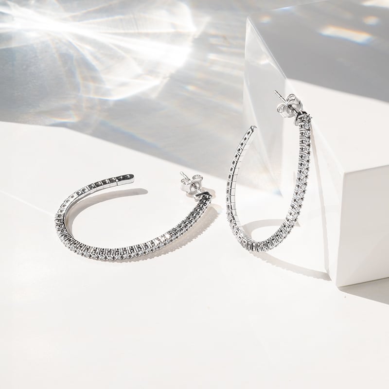 • halbrunde Ohrringe, die von einer Reihe im Labor hergestellten Diamanten gebildet werden