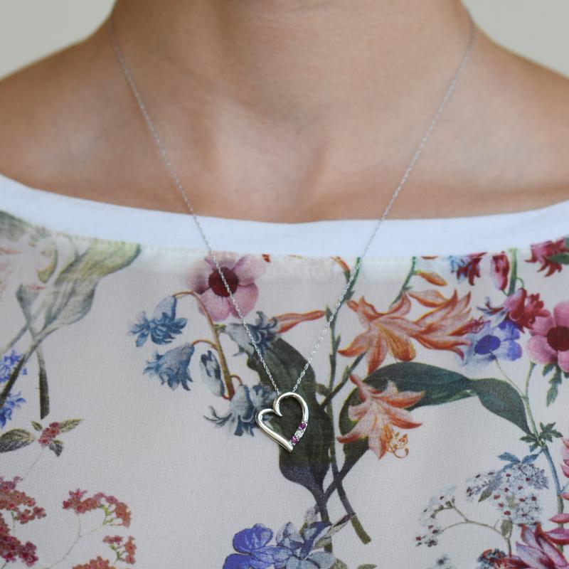 • das niedliche Goldherz mit seinem Trio aus Edelsteinen wird romantisch an Ihrem Hals strahlen