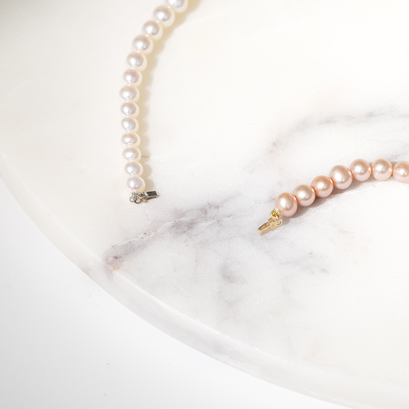 Goldene Halskette mit pfirsichfarbenen Perlen 7-7.5mm Melita