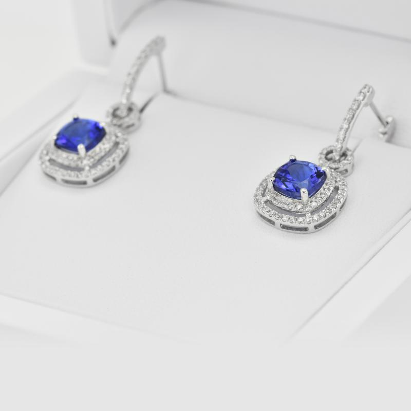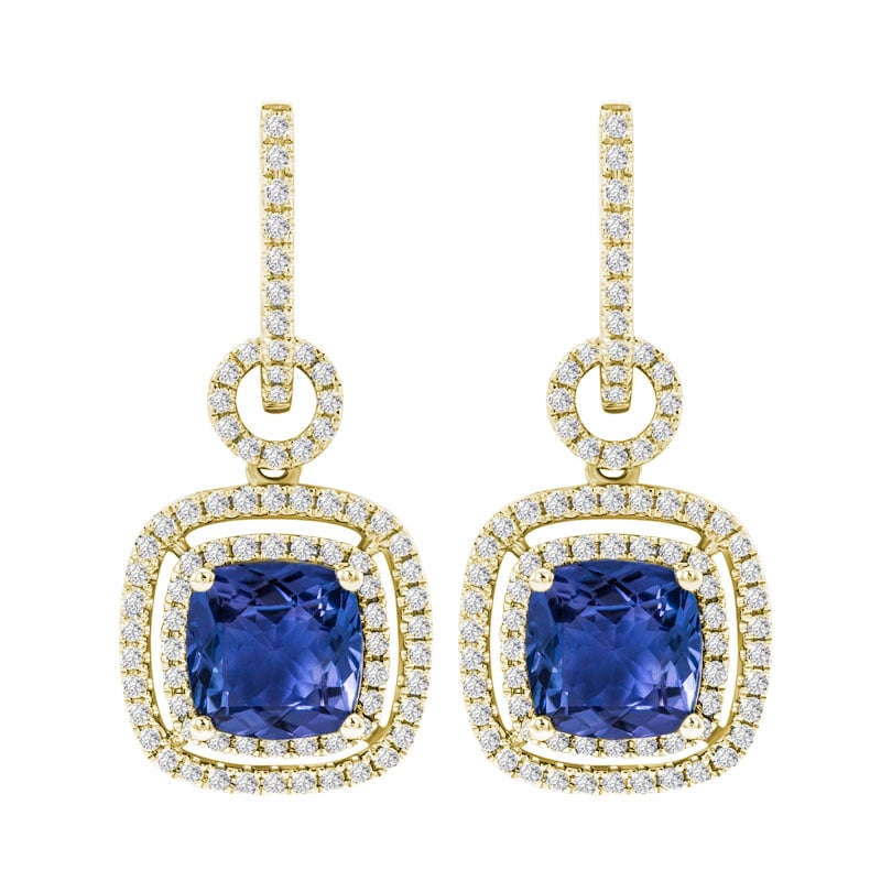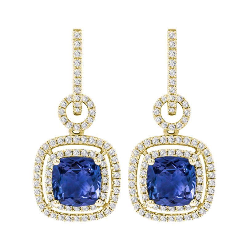 Goldene hängende Ohrringe mit Tansaniten und Diamanten Balliaas