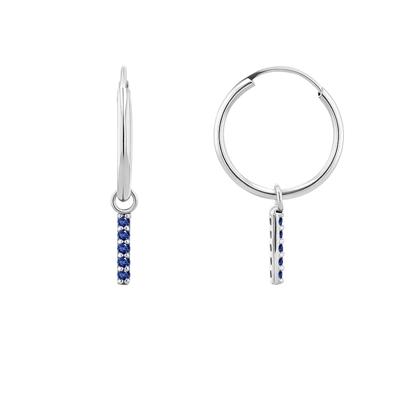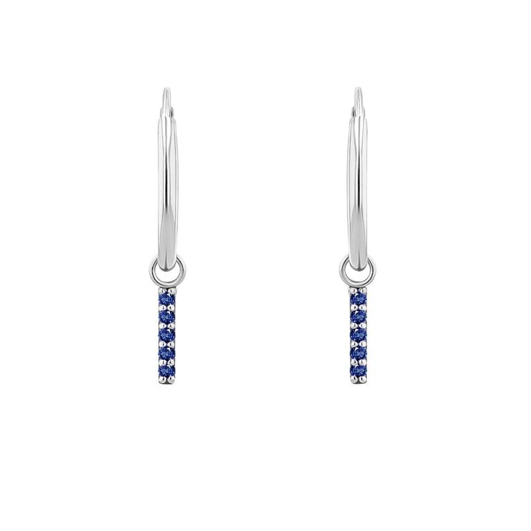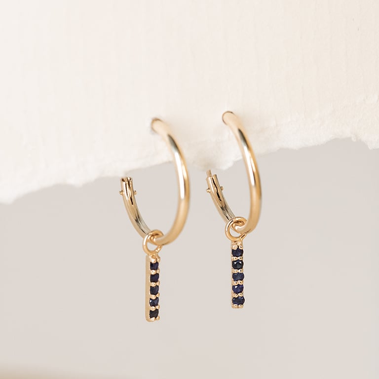 • beide Ohrringe sind mit einem Anhänger in Form von fünf dunkelblauen Saphiren geschmückt