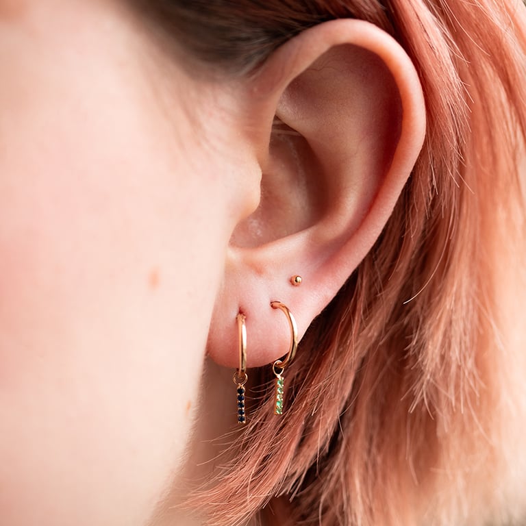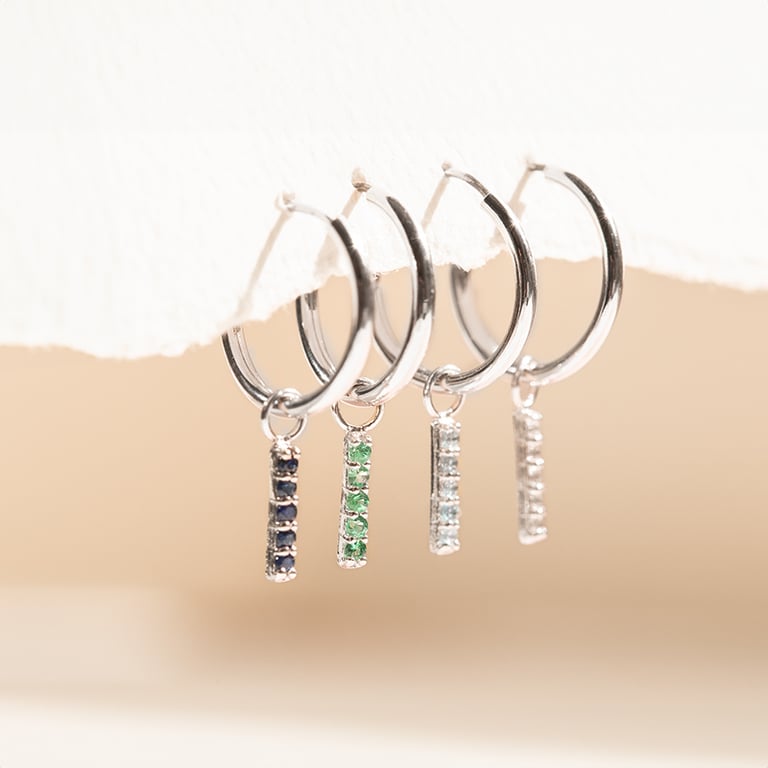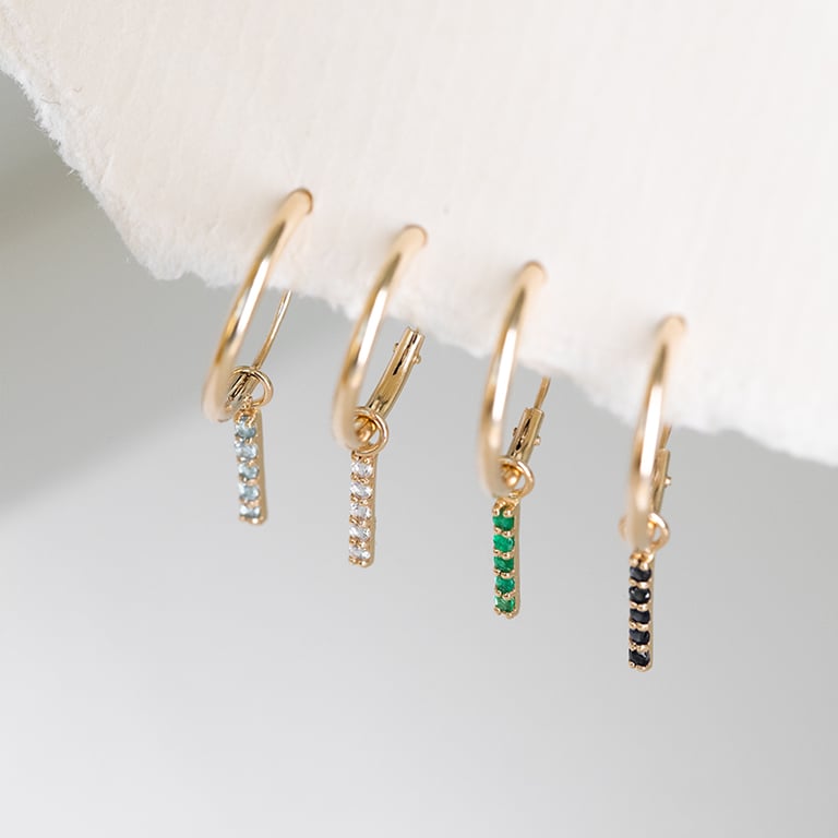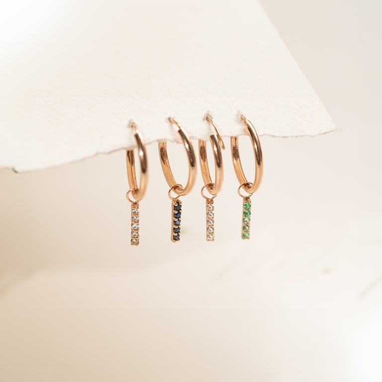 • Creolen aus 585er Gold, verziert mit Edelsteinanhängern