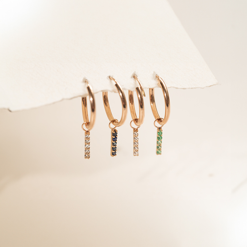 • klassische Creolen aus 585er Gold mit Edelsteinanhänger
