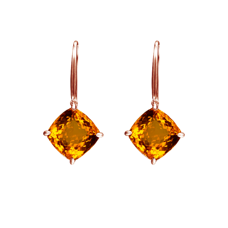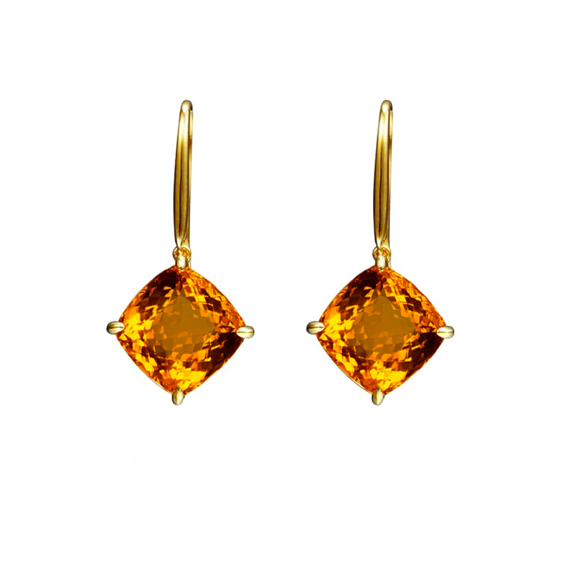 Goldene Hängeohrringe mit Citrinen im Kissenschliff Neophyte