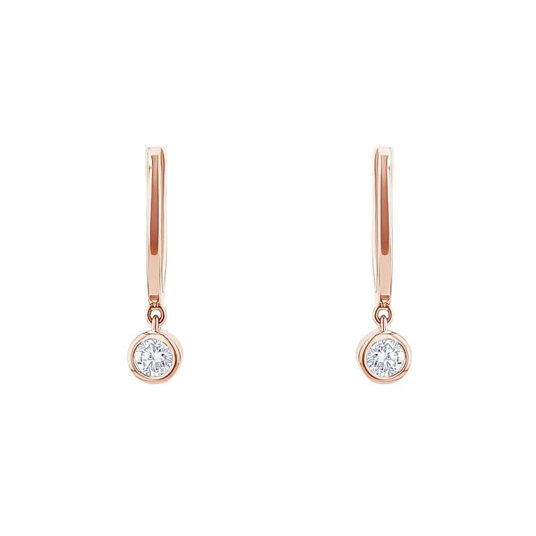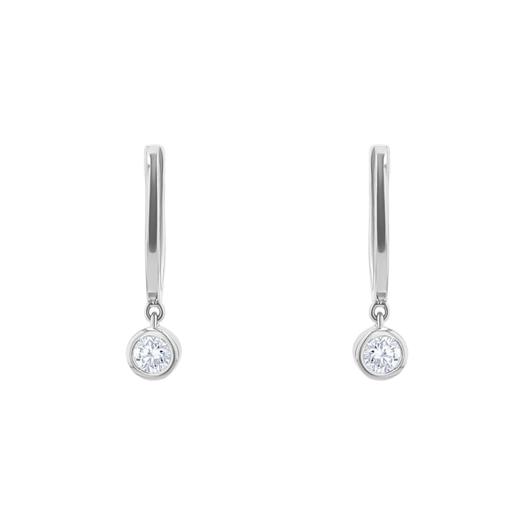 • ein runder, im Labor hergestellter Diamant hängt in einer sicheren Bezelfassung an einem zarten Ring