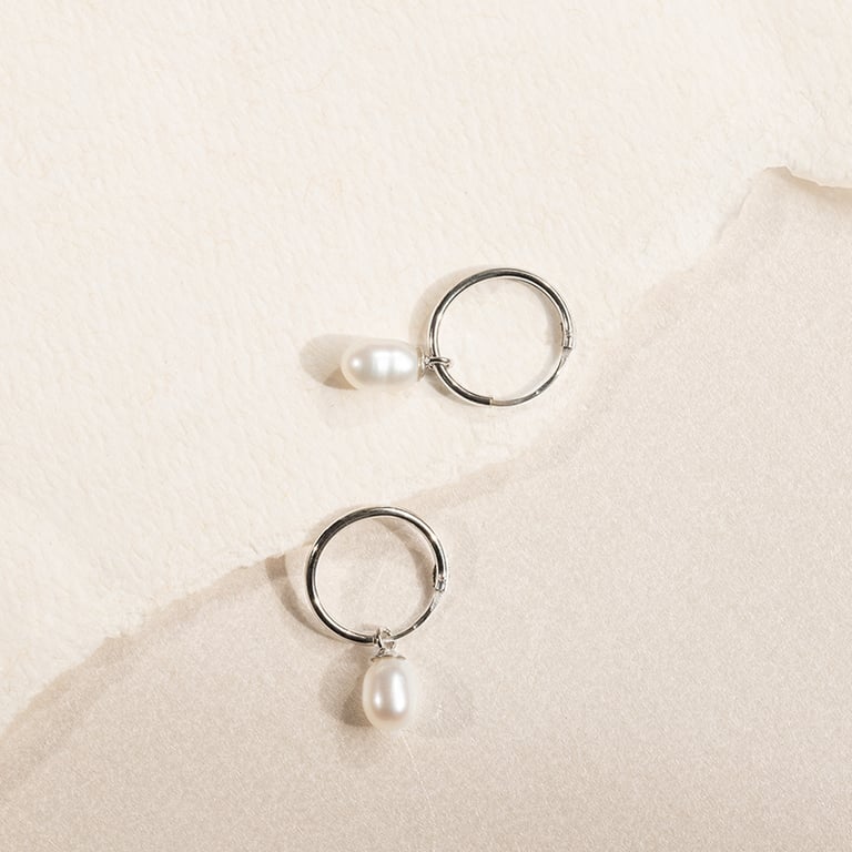 • jeder Ohrring ist mit einer schönen weißen ovalen Naturperle verziert