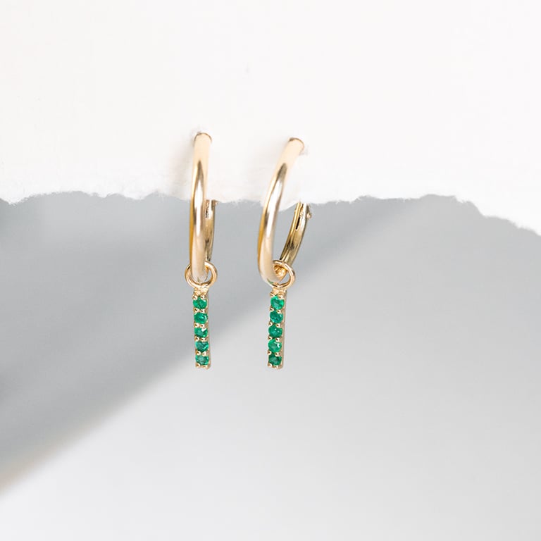 • jeder Ohrring aus 585er Gold ist mit fünf natürlichen Smaragden verziert