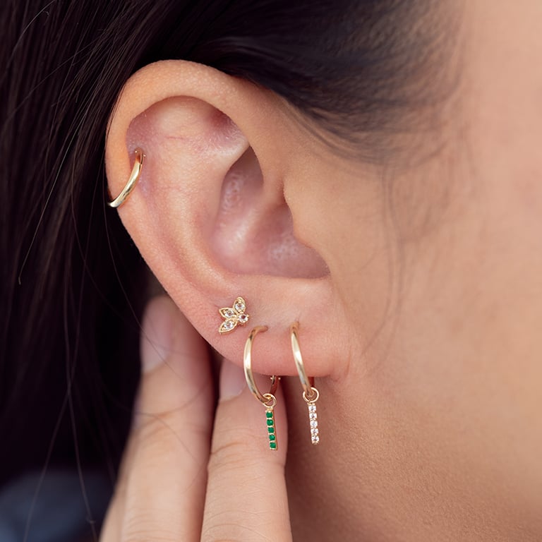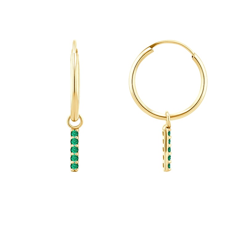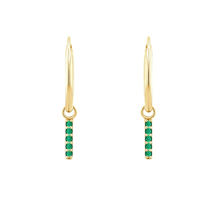 • einfache goldene Creolen mit originellen Edelsteinanhängern