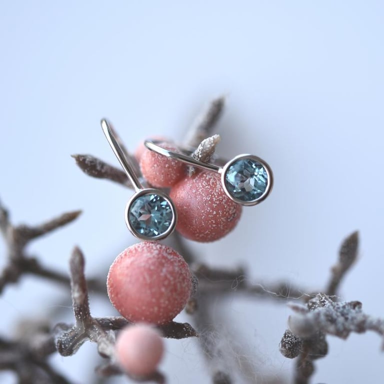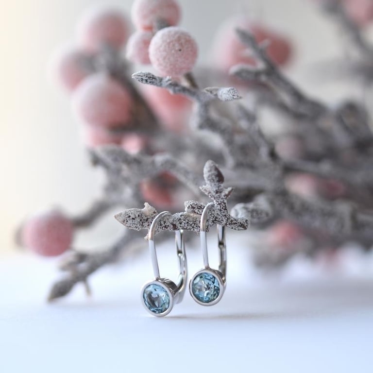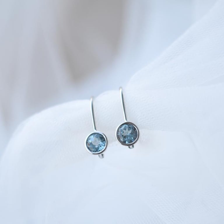 • elegante Hängeohrringe aus Weißgold mit strahlendblauen Topasen