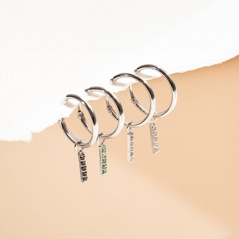 • Ohrringe im Creolen Stil, an denen fünf natürliche Topas-Anhänger befestigt sind