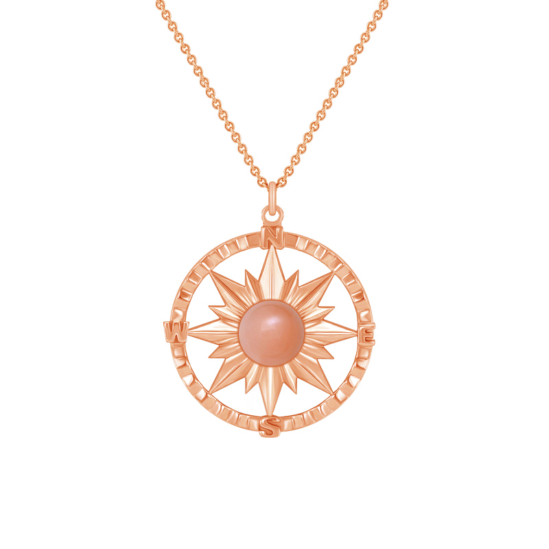 • Goldanhänger in Kompassform mit Mondstein in Pfirsichton