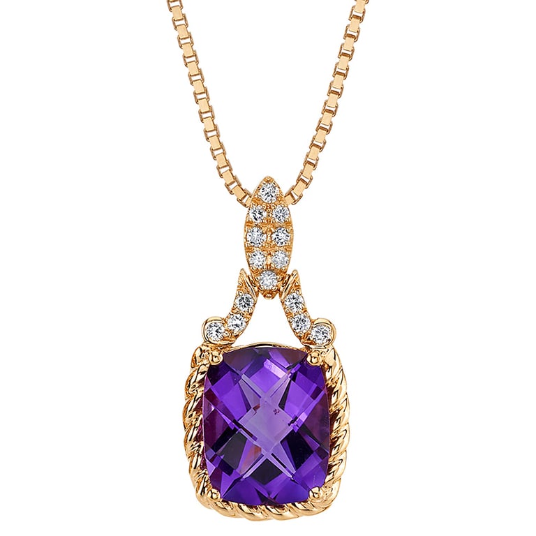 • eleganter Goldanhänger mit Amethyst und seitlichen, Lab Grown Diamanten