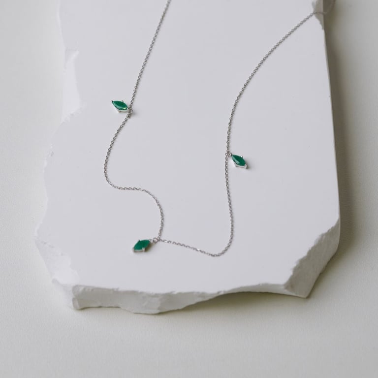 • eine elegante Halskette, die die Zartheit einer Kette mit der Kraft von Edelsteinen verbindet