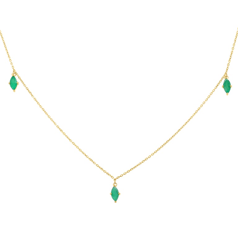 • die Kette aus 585er Gelbgold wird durch drei natürliche Smaragde ergänzt