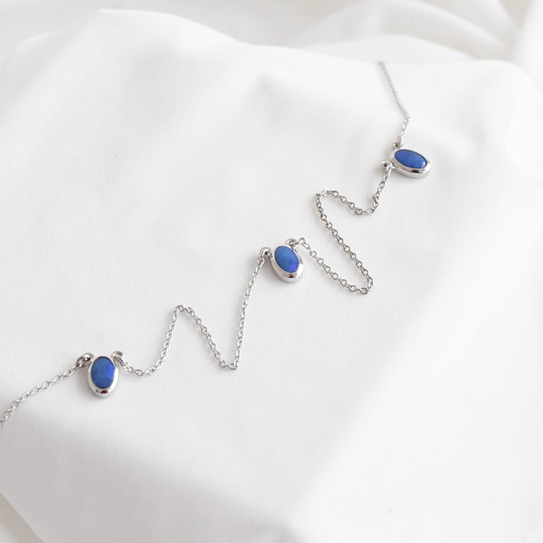 • die Kette wird von einem Trio blauer Opale in der beliebten ovalen Form geschmückt