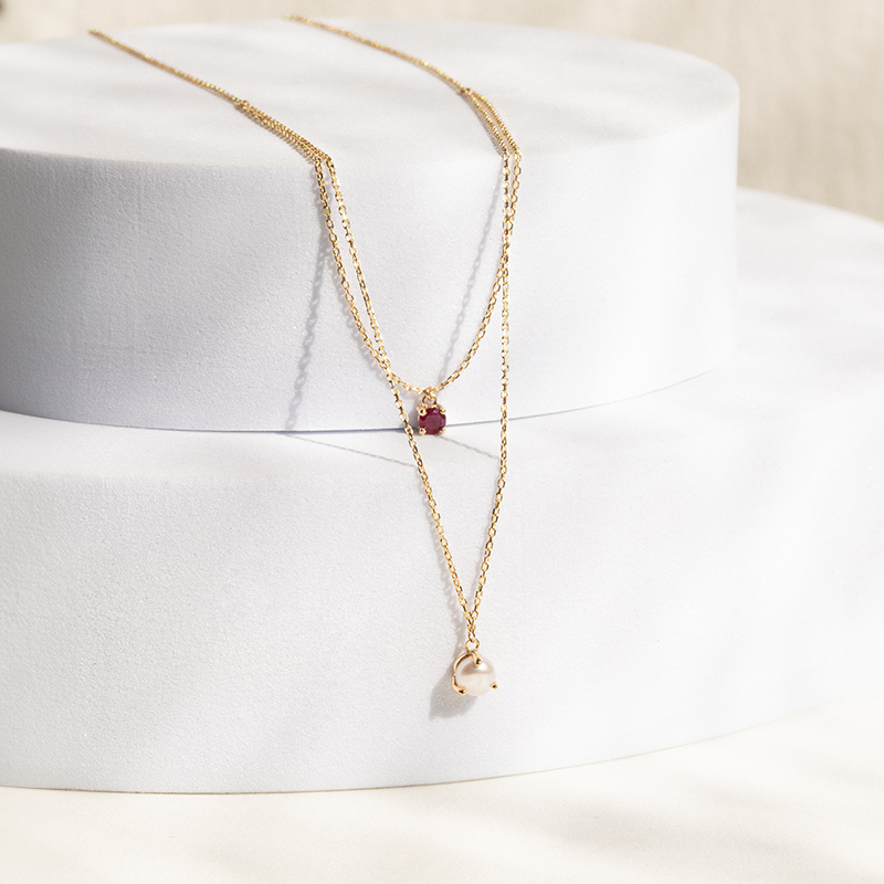 • Ketten mit weißer Süsswasserperle und natürlichem Rubin