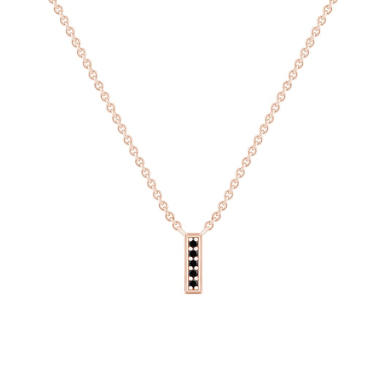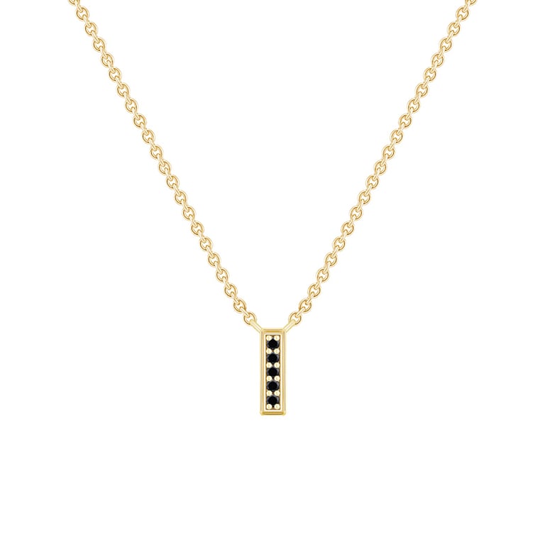 • ein Anhänger mit fünf runden schwarzen Diamanten dominiert die Kette