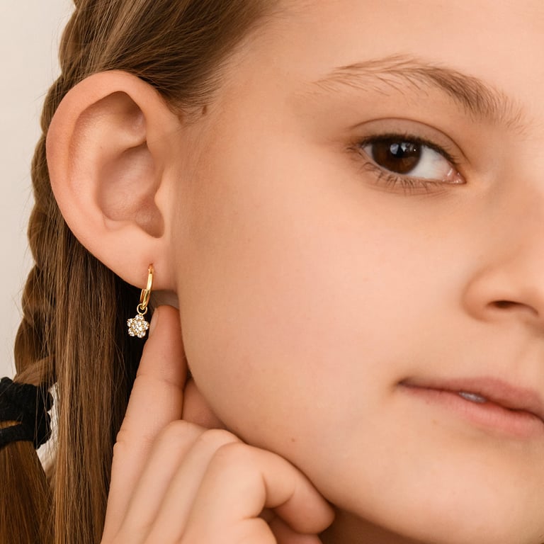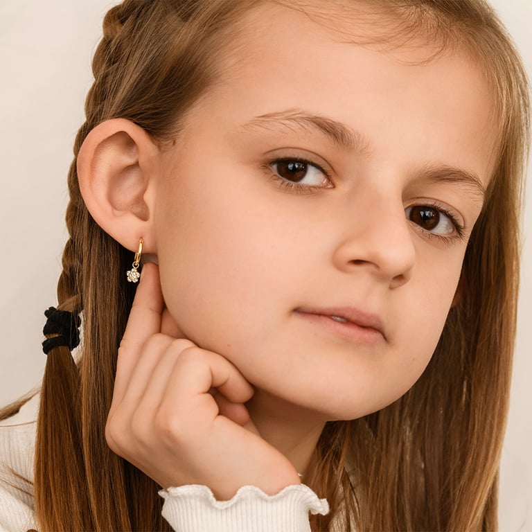 Goldene Kinder-Ohrringe in Form einer Blüte Dahlia