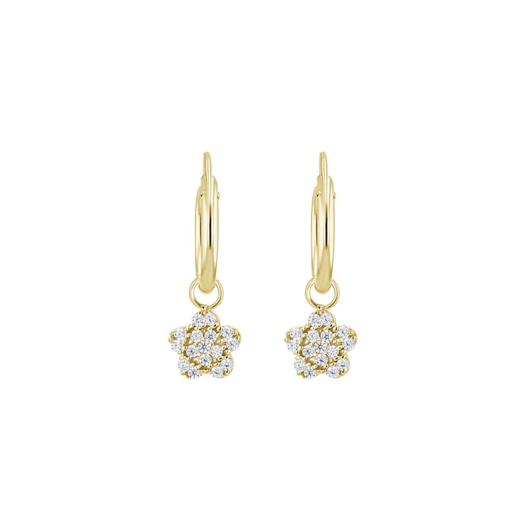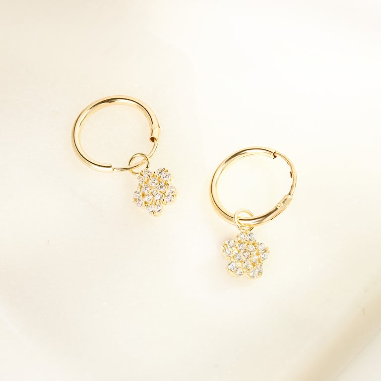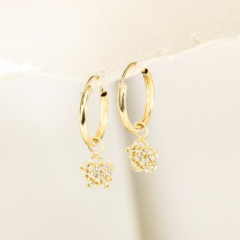• goldene runde Ohrringe mit Anhänger in Form einer Blüte