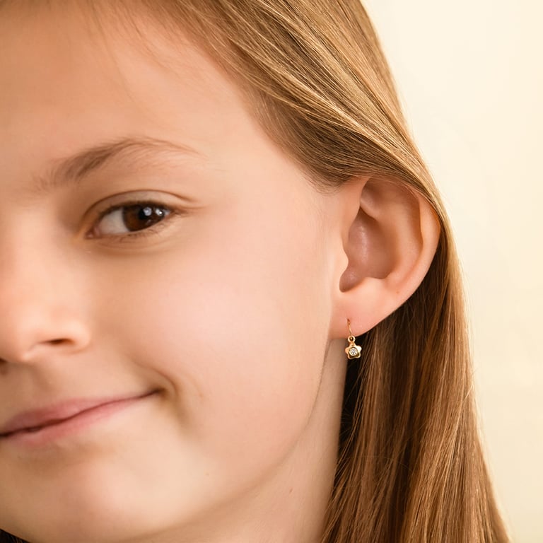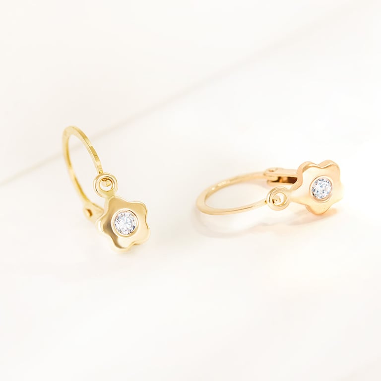 • jede goldene Blume ist in der Mitte mit einem runden Zirkonia verziert