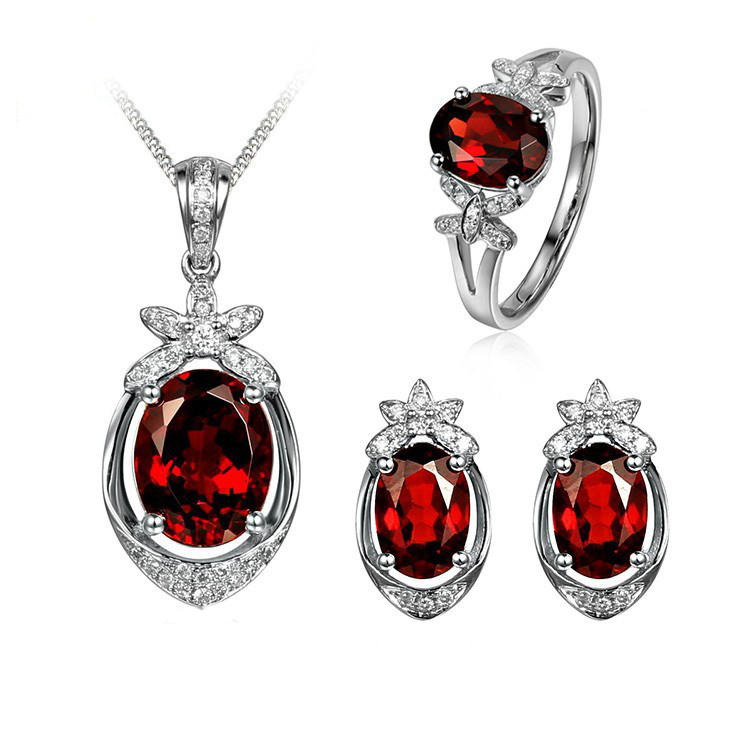 • rote ovale Granate werden von Diamanten, die wie Schmetterlinge aussehen, umgeben