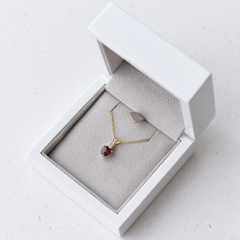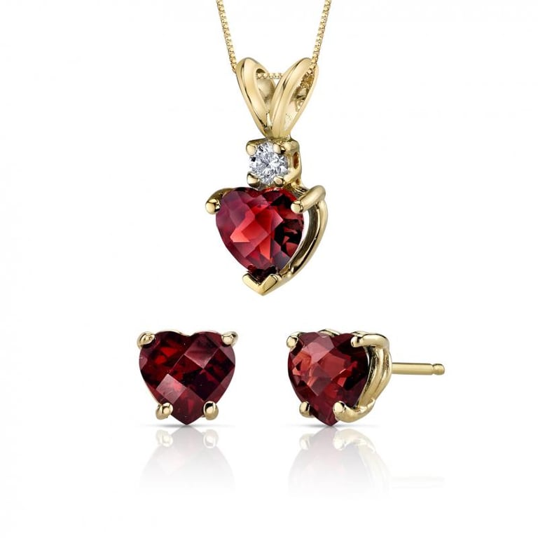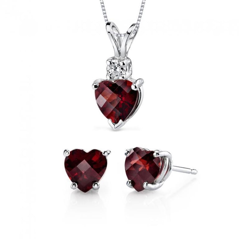• dieses Schmuckset in Weißgold beeindruckt mit den tiefroten Granatherzen