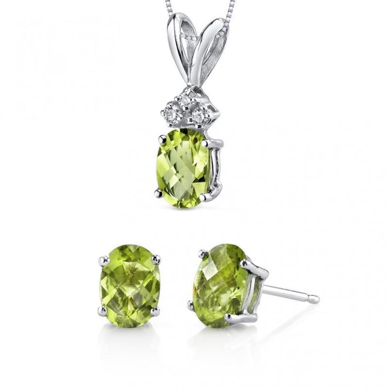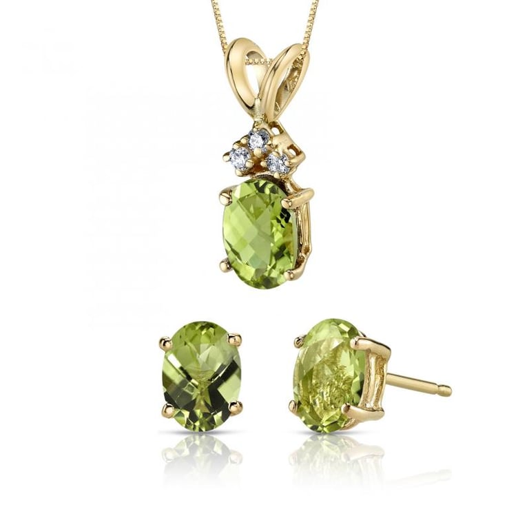 • ein Schmuckset in Gelb- oder Weißgold, das durch die strahlend grünen Olivine unglaublich lebendig ist