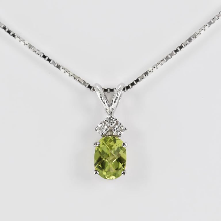 • oval geschliffene Olivine zieren die Ohrstecker und den Anhänger, hier zusätzlich mit drei Diamanten
