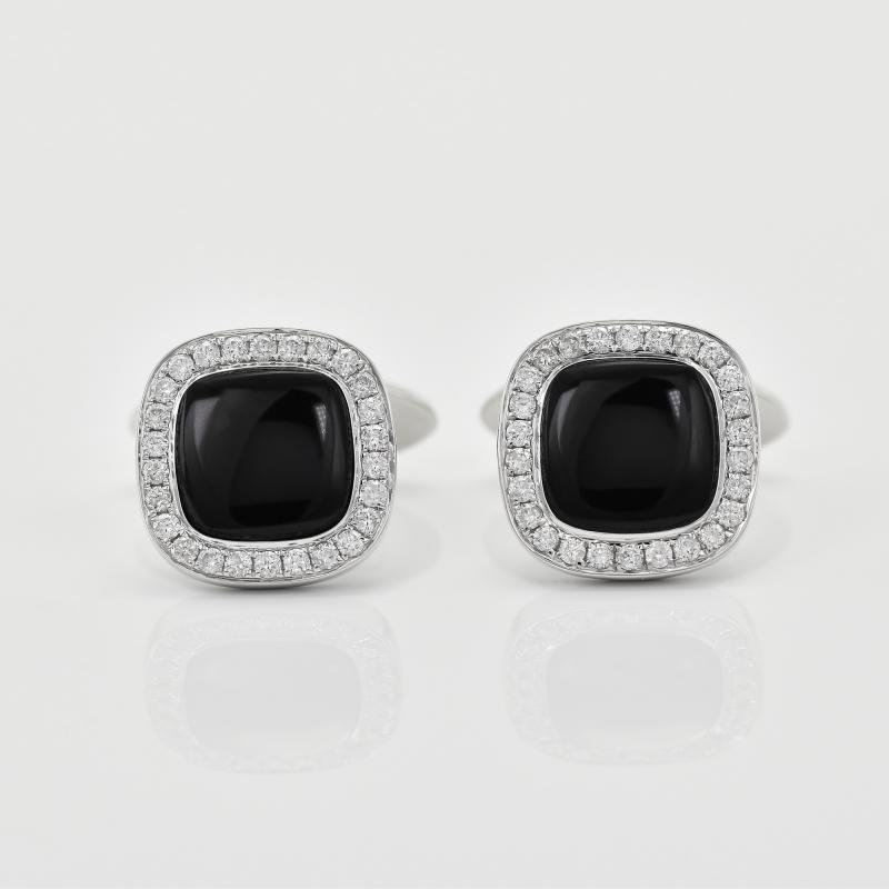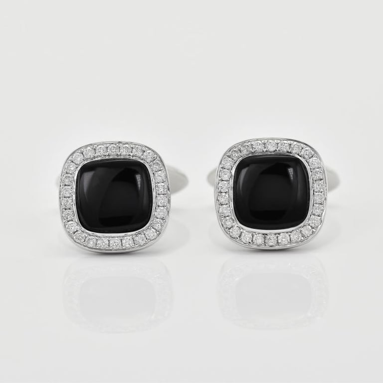 • luxuriöse Manschettenknöpfe aus Weißgold mit Onyxen werden hier von Diamanten eingerahmt