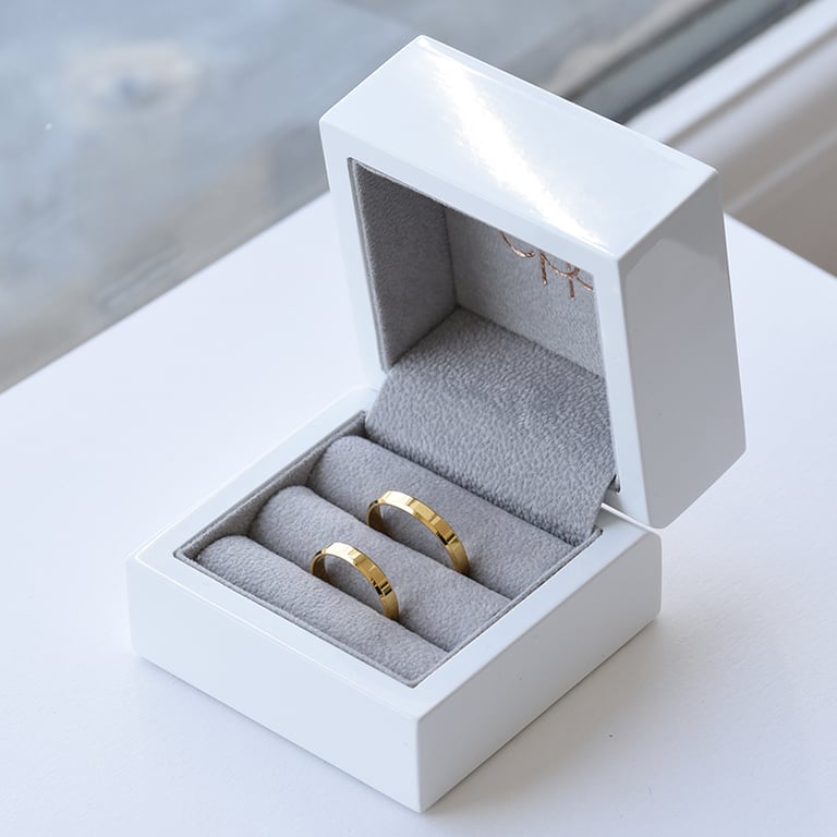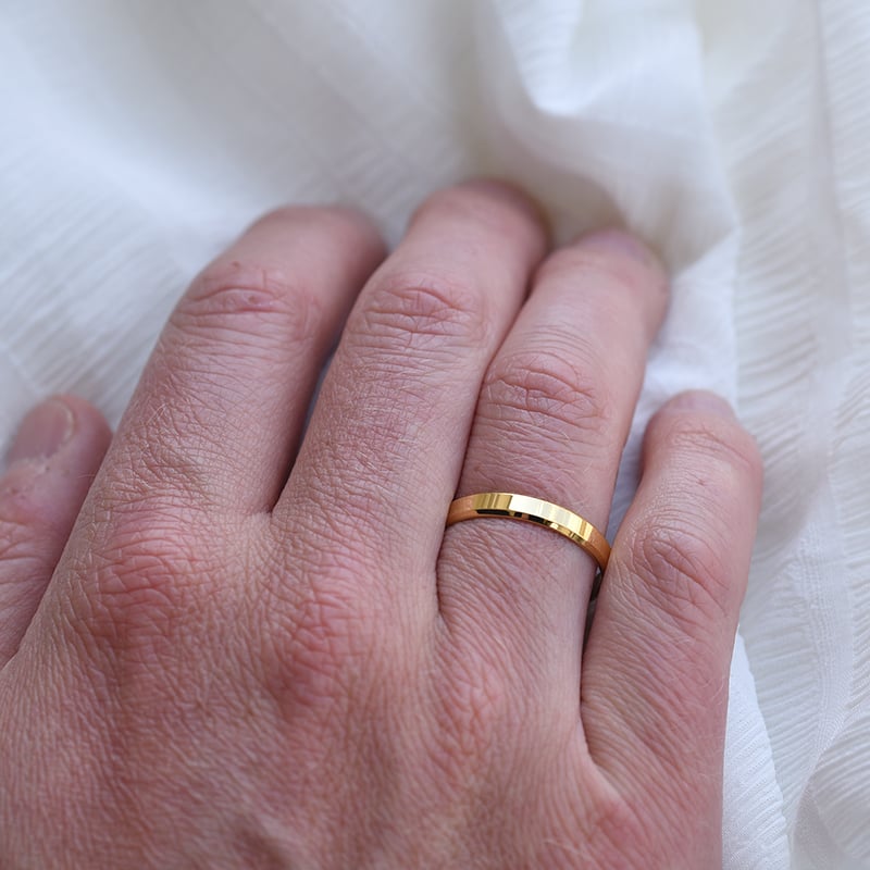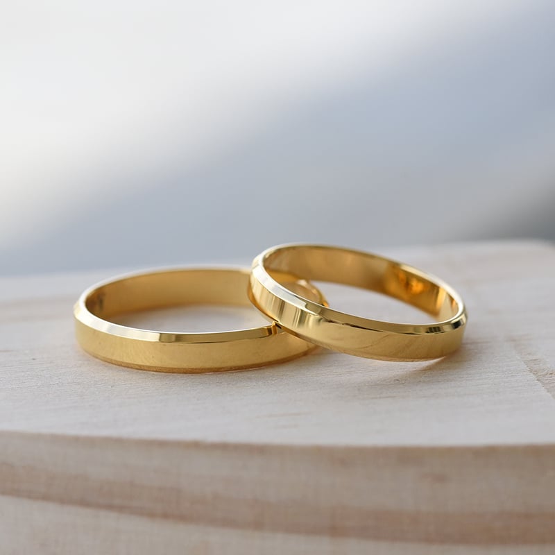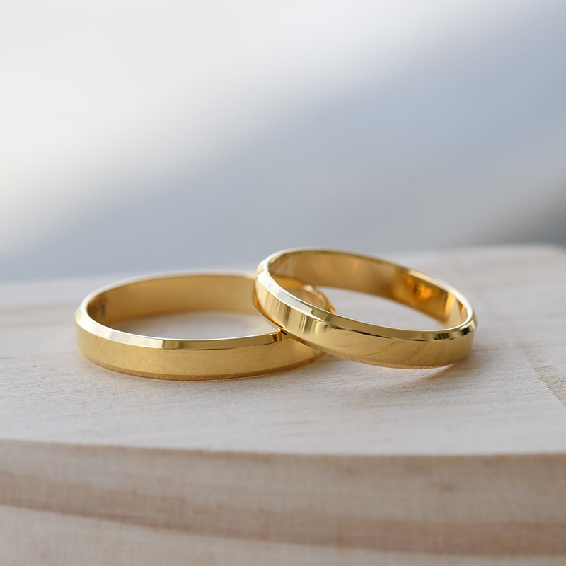 Goldene minimalistische Eheringe mit abgeschrägten Kanten Varden